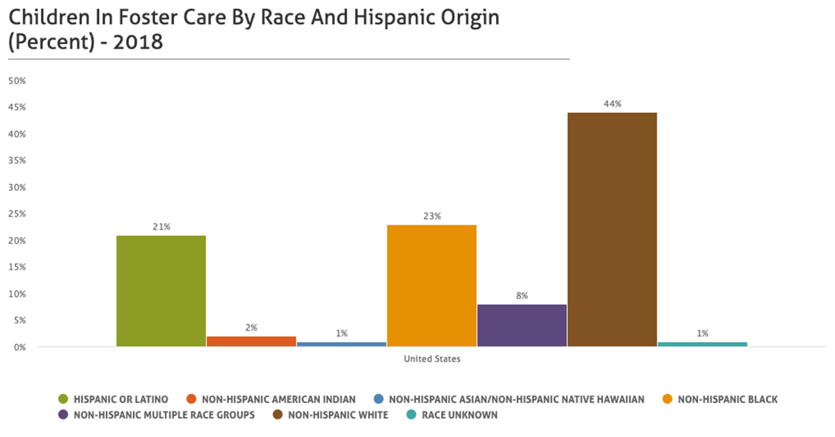 In 2018, Black children represented 14% of the total child population but 23% of all kids in foster care.